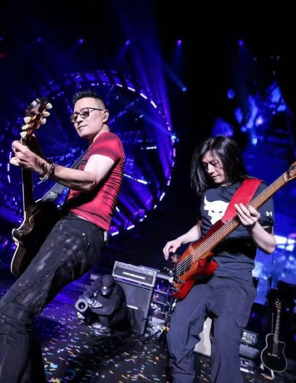 汪峰晒出很多韦国勇的照片,长发飘飘的他,很热爱这样的舞台。