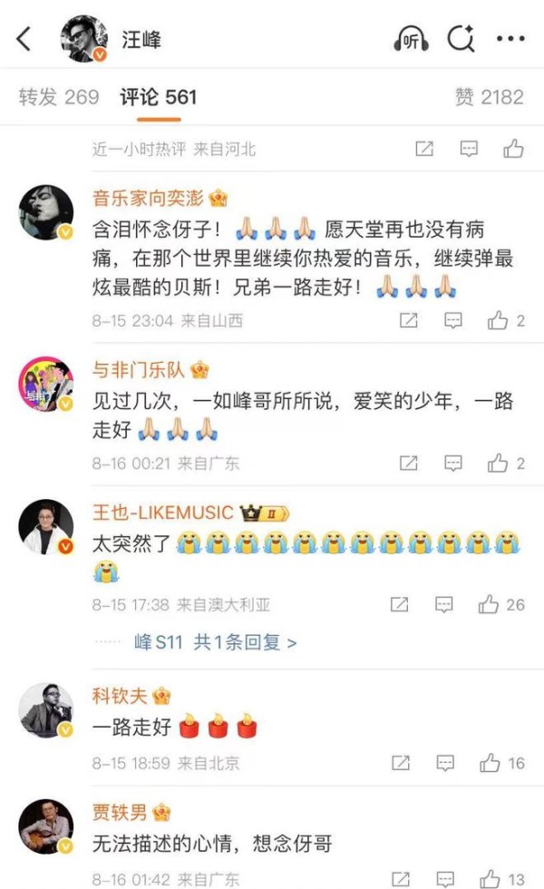 还有很多人在悼念他,熟悉和陌生的,很多人都送他最后一程,希望在音乐里,能够记住他的精彩表演。