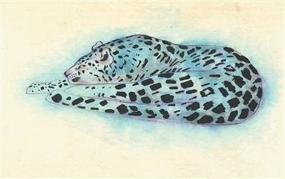戴泽对时代与艺术的体察从未止步,即使进入晚年,他依然在创作。作品《蓝豹》(见图)正是他这一时期深刻自我剖析与艺术形式探索的结晶。画面中,一只笼罩在蓝紫色中的豹子蜷缩匍匐,眼神上翻,流露出孤傲、警觉之感。这只蓝豹仿佛是艺术家晚年的精神自画像,透露出历经沧桑后依然坚韧的意志。与早年写实风格不同,戴泽晚年转而拥抱更具象征性和表现性的艺术语言,这种转变并非刻意追逐潮流,而是源于他的内心自由,也是他对当时艺术领域关注个体精神和主观表达的思潮的回应。