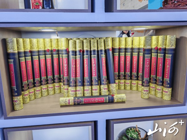 8月22日上午,山西晚报·山河+记者刚进展区,便看到门口的吧台上,一排一排由工作人员整齐码放的《何以山西》典藏版,其设计独特的金箍棒外形以及厚重的山西历史文化内容,吸引了不少游客驻足购买。