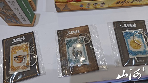 值得一提的是,此次“山河文创”展区内,还展示了十余种由山西晚报自主设计的文创产品,如小巧精致的“三晋匙语——山西文物钥匙扣”,以山西晚报·山河+客户端主页面为设计原型的“指尖山西”冰箱贴等,均受到游客喜爱。记者在现场了解到,目前该类产品是全场销售最为火爆的文创产品之一。