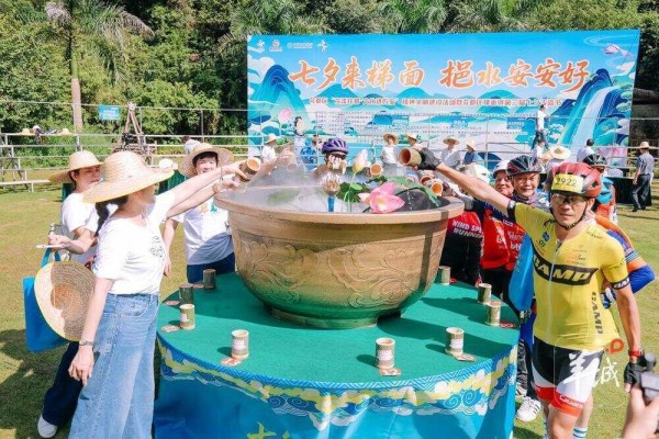 在花都,梯面镇第三届七夕玉露节开幕,一场集文化传承、民俗体验、山水休闲于一体的夏日盛会激情上演。开幕式上,身着传统服饰的客家村民手持鲜嫩柳枝,以“轻洒甘露”的传统仪式为来宾送上祝福。