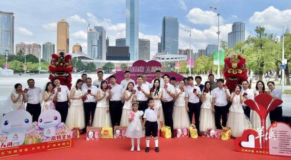 越秀区则正式成立“越秀越爱甜蜜联盟”,并举办首场主题活动。位于广州东方宾馆户外中庭花园的“花城有囍”结婚登记户外颁证点启用,兼具浪漫情愫与文艺气息的岭南特色园林风格,满足新人对结婚仪式的个性化需求。现场还引入了“婚俗+慈善”公益义卖模式,倡导新人们将家庭的温馨“小爱”延伸到奉献社会的“大爱”。