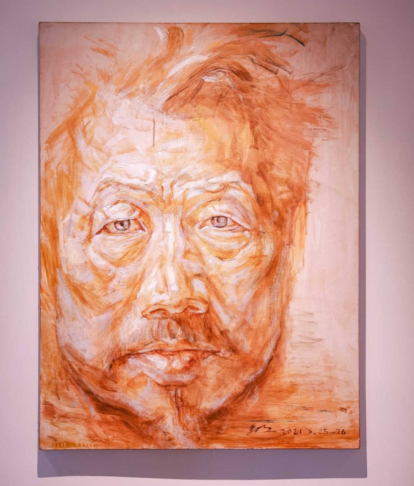 在展览中,刘亚明坦言:“在《人间幻境》之后积累了四年的情绪,一直压抑着没有画自画像,现在呈现的自画像,有忧虑和迷茫的眼神,也有坚定、渴望的眼神,有时甚至充满愤怒。这批自画像基本都在2021年3月到4月之间创作。内心的波澜,包括忧郁、愤怒、迷茫、欣喜、绝望等。有些画,只用三天或者一天半的时间,将心里的情绪宣泄出来。”