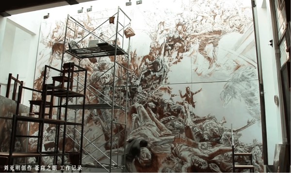 在刘亚明看来,大画绝非小画的简单放大。“大型绘画如同长篇小说和交响乐,是多层次的、纵深的、立体的、充满旋律感的。”他说,之所以创作巨幅油画,是因为对当下的诸多社会问题、对人类的生存环境及其命运作出了自己的思考。