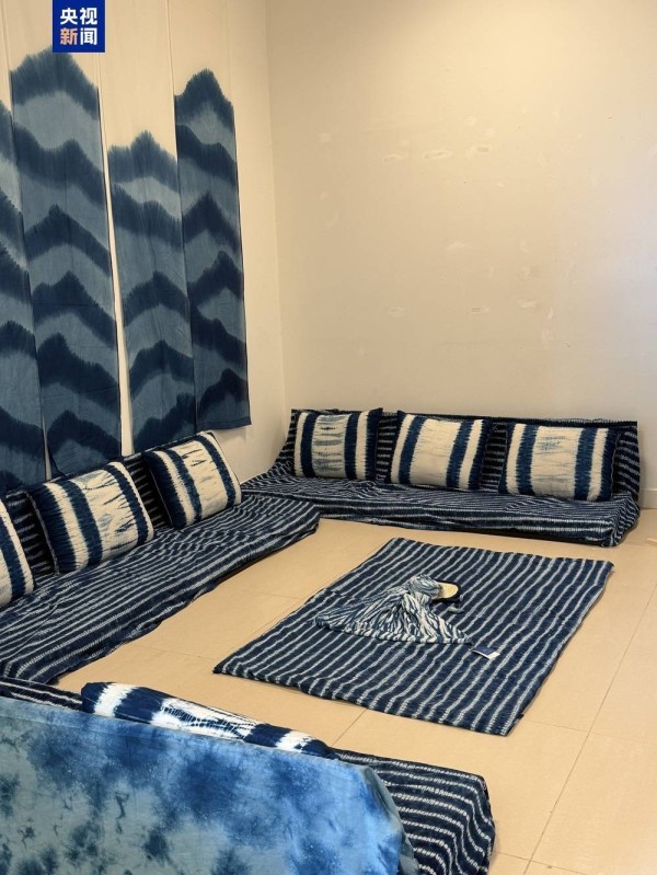 值得一提的是,展览还特别融入阿联酋文化元素,通过扎染工艺再现阿联酋传统服饰Abaya,并搭配阿拉伯传统座席陈列。这一创意呈现既保持扎染的艺术语言,又贴近本地文化语境,成为中阿人文交流的生动示例。