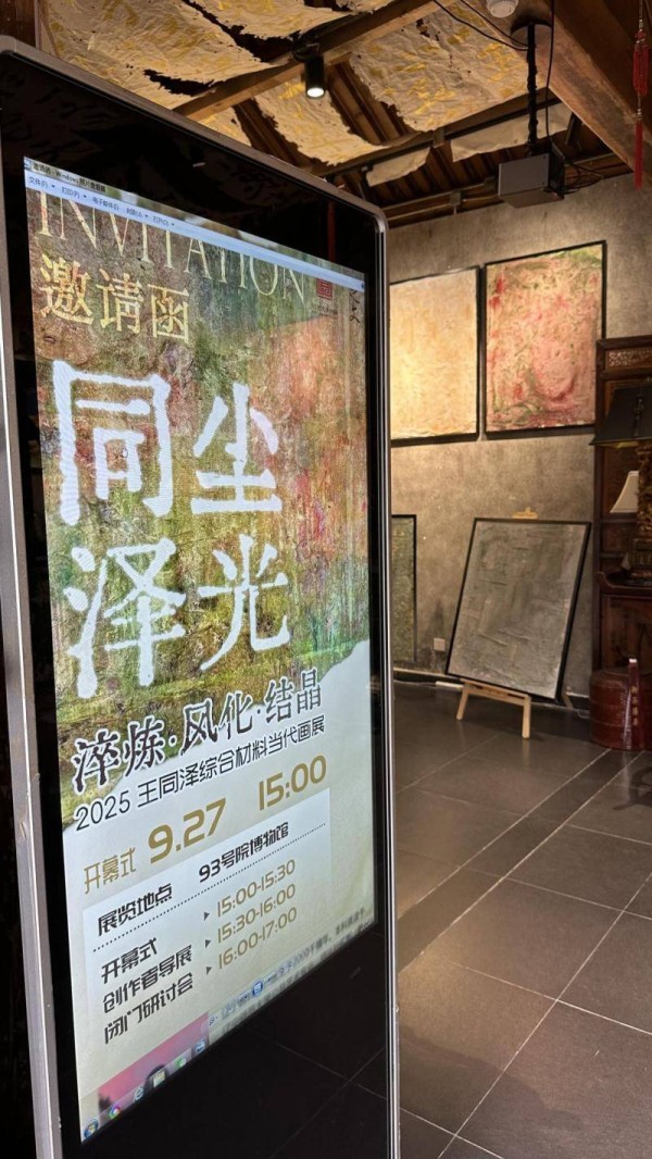 青年艺术家王同泽的首次北京个展《同尘泽光:淬炼·风化·结晶》,近日在前门大栅栏93号院博物馆正l拉开帷幕。本次展览集中呈现王同泽近年创作的25幅代表作品,分为“碎景”“余痕”“遗构”三个系列展出,更突破传统模式,融合观展讲展、京剧欣赏与学术研讨,营造出兼具思想深度与文化温度的交流场域。