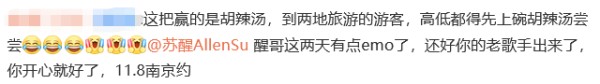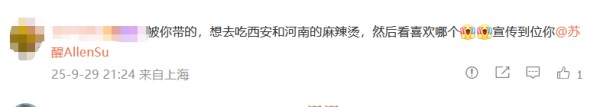 有网友在苏醒道歉的微博留言表示,希望能去品尝河南和西安胡辣汤。