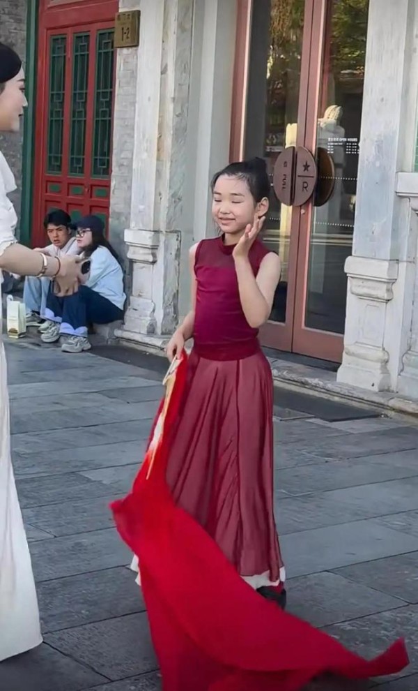 遇到粉丝拍摄,小酒窝还向他们热情打招呼,小姑娘完全不惧镜头,表现欲很强,社交能力适合在娱乐圈发展。