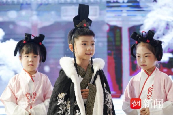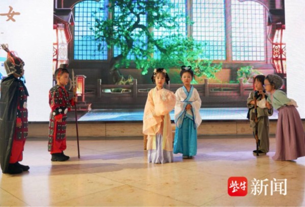 10月1日下午,六朝博物馆一楼大厅,来自江苏省军区第四幼儿园大班的孩子们,穿越千年演绎《咏絮才女》,以儿童视角生动还原东晋才女谢道韫的传奇人生,这也是该园国庆节期间献演的第四部匠心之作。