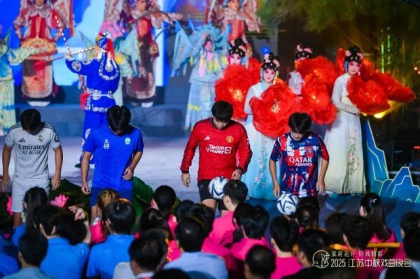 传统戏曲如何“玩”好今年的热点,打造梨园“苏超”?年轻人有办法!国潮PK场《苏超之超》将年度热点与戏曲艺术大胆碰撞。梅花奖得主李雪梅、王晓红、龚莉莉与优秀演员由腾腾、韩志良、谭步权联袂,还加入大学生们表演的艺术体操和花式足球同台献技,在戏歌《苏超之超》中掀起高潮。这是年轻人自己的戏曲icon,更是传统艺术的破圈宣告。
