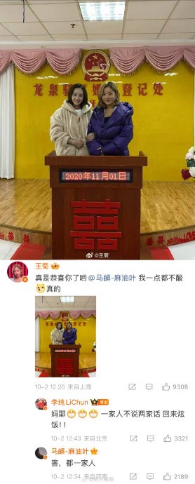#王菊晒和李纯在婚姻登记处合照# 李纯马頔结婚,王菊留言还晒了合照,这几个人的互动好有意思哈哈哈隔着屏幕都已经感受到李纯王菊的深厚友谊啦!梦回爱很美味!现实中也是关系超级好的姐妹~友谊久久!