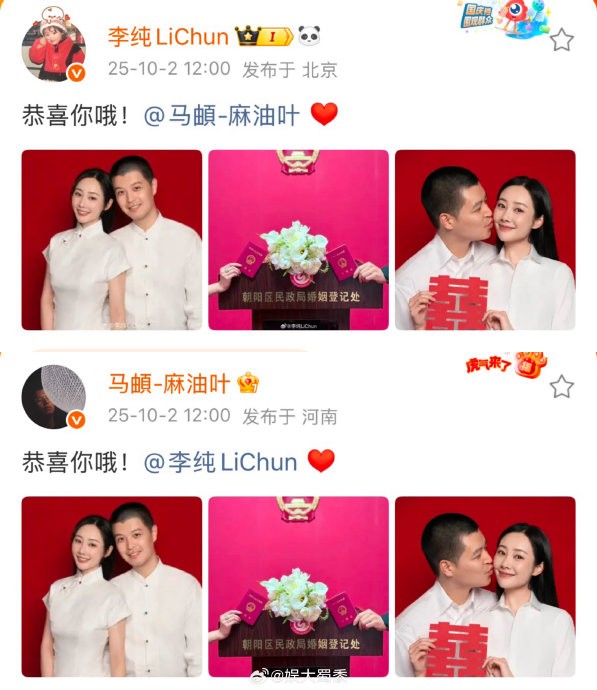 李纯马頔官宣结婚晒红底照马頔、李纯官宣领证结婚