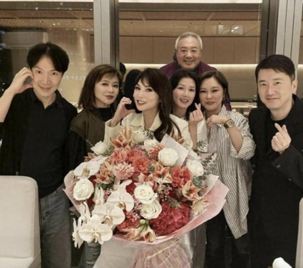 62岁关之琳参加生日会,穿花衣合照比寿星抢镜,站中间被视为贵宾62岁关之琳亮相生日会,花衣亮眼合照抢镜,站中间获贵宾待遇