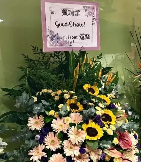 这次有不少明星给窦靖童送了花篮!其中最显眼的就是谢霆锋的花篮,谢霆锋写了“Good Show”,落款是霆锋,这个落款就能看出俩人关系很不错,显得很亲切。容祖儿也送了花篮,落款就是容祖儿,从名片字体来看,她和谢霆锋应该是订的一家花篮,可能英皇公司艺人都订一家花篮,不过从落款来看,谢霆锋还是更显熟悉。