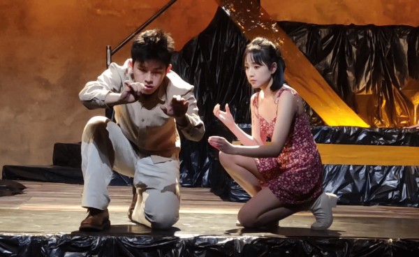 有意思的是,一部具有时代气氛的鸿篇巨制居然只有三个演员在台上!不过,这三个演员堪称身手不凡。他们并不是靠令人眼花缭乱的演技取胜,他们的演技几乎是超越演技的魅力,按张广天先生的说法,这正是还原到戏剧神圣的起点。主演王雅婷举手投足皆在韵律和节奏中,她充满诗性的表演使得追求性格化人物化的观剧体验显得老旧苍白不合时宜;男主安崇羽看起来柔弱而文秀,不过他的派头大方而节制,一般话剧舞台上难得有这样不俗的气质;罗甜甜饰演的电影厂明星班的学员黄惠给人印象深刻,她年轻漂亮,肌肤闪耀着迷人的光芒,却掩不住她热烈而疯狂的高能量内心。