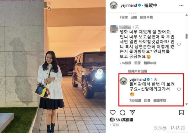 其中有粉丝好奇问她:「姐姐有问老公玄彬的感想吗? 看完采访后很好奇」这则留言意外钓出孙艺珍亲自回应:「打算再看一次,把老公也带去(看)。」,公开预告中秋连假两人将共度甜蜜约会行程,闪瞎大票粉丝。 事实上,孙艺珍此次回归影坛,玄彬一路支持到底,从出席《征人启弑》的VIP场映后会到参与庆功宴,始终陪伴在老婆身边,展现铁壁级宠妻守则。