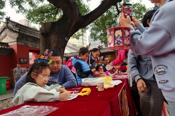 中国日报10月6日电(记者 姜东)2025年10月6日,北京民俗博物馆举办“月盈中秋 桂香满园”中秋游园会,邀请游客品节令花茶、猜趣味灯谜、寄中秋情思、观非遗兔儿爷山。游园会融合传统中秋民俗和现代创意,为游客提供传统文化现场体验,在700余年古庙里感受传统非遗和中秋节日氛围。