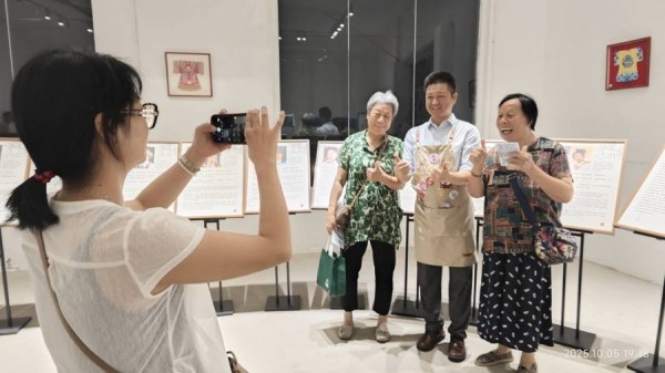 此次展览吸引了不少传统文化的爱好者,每天前来展馆参观的人们络绎不绝。他们中不乏钟爱越剧的戏迷朋友,有些还是慕名而来。当几位老戏迷认出为展览做讲解的竟是齐春雷时,激动地说道:“侬是齐春雷?啊呀!侬到崇明来了?太多年没看到你了……啊呀激动得来……拍照拍照!”惊喜万分的他们赶紧招呼自己的女儿女婿们为他们和齐春雷一起合影留念。临走时,老戏迷们依依不舍地拉着齐春雷的手说道:“下次你们一定再来噢。来崇明演出,我们一定还来看、一定还来看!”