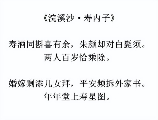 此外,在词的下阕中,辛弃疾描写了儿女们来为妻子祝寿的热闹场面,将整个词的气氛带回到温馨的寿宴上,并送上了“年年堂上寿星图”的祝福。他通过这些细腻的描述,展现了自己对家庭的珍视,表达了平安健康才是最大的幸福。