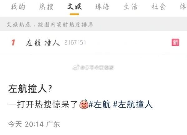 左航被曝撞人事件引热议,时代峰峻暂未回应