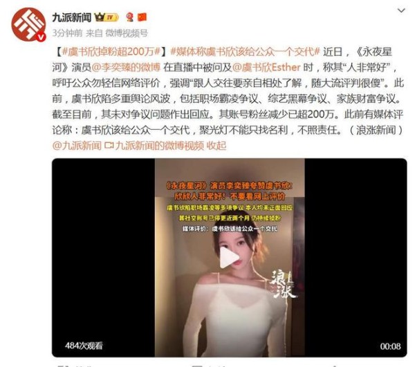 虞书欣掉粉超200万,媒体评论称:虞书欣该给公众一个交代