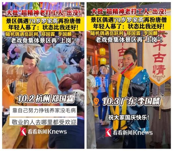 国庆期间在景区 “偶遇” 老戏骨的不止罗家英一位。有游客就在同一时间段,分别看到了岳跃利、郑国霖、李国麟等几位知名老演员。岳跃利穿着一件深色上衣,戴着眼镜,看起来温文尔雅,遇到游客要求合影,他都笑着答应,还会主动调整姿势,特别贴心;郑国霖则穿着运动风的衣服,和游客聊天时侃侃而谈,聊到兴起时还会比划手势,活力十足;李国麟更是接地气,不仅和游客一起打卡景区景点,还会主动分享自己的游玩心得,就像身边的长辈一样亲切。这些老戏骨们没有一点明星架子,和游客热情互动的样子,让不少人直呼 “太圈粉了”,还有网友说:“现在的年轻艺人真该学学这些老艺术家,不仅演技好,人品和心态更是没话说!”