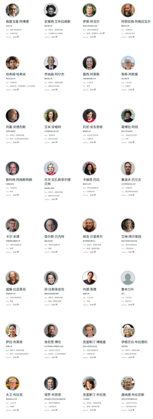 美国艺术与科学院院士制度介绍及2025 年新当选院士名单完整版!