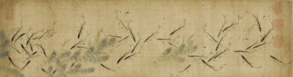 试拈起《藻鱼图》来一消人世忙迫尘劳:在忙迫不堪的美利坚合众国中,我在纽约的大都会艺术博物馆见到了南宋赵克敻的一开册页,那几条倏忽来去的白条鱼真画得动态宛然,人若能如此来去自如,便是大自在菩萨了!