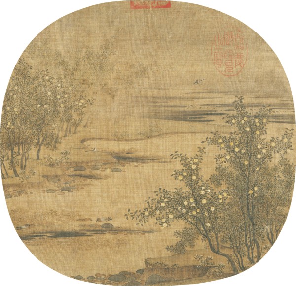 台北故宫博物院还藏有一幅美丽的《橙黄橘绿图》,团扇设色,画橘柚满树、野水平远之景,也是写苏东坡诗意:“一年好景君须记,正是橙黄橘绿时!”