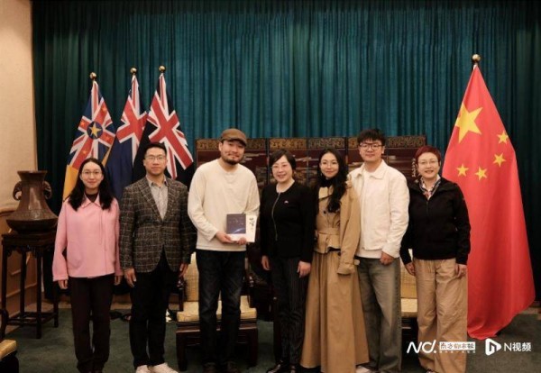 刘汉霖等《转人工》主创人员在中国驻新西兰大使馆进行文化交流。