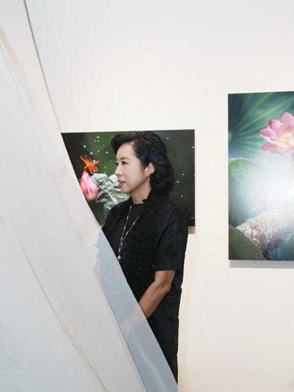 霍震霆前妻在上海办摄影展,黑裙配红鞋气质高雅,77岁丈夫也在场