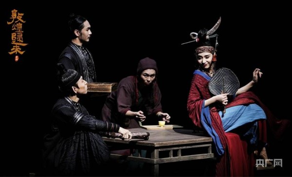 全剧由“铭记、集结、追捕、启程、虚惊、夜袭、英灵、绝境、信念、祈愿、献图、归来”共十二个段落组成,塑造了士兵、僧人、乐工等一系列性格鲜明的人物形象,联结起家国文化与千年古城间的情感。同时,从敦煌壁画中遴选主要场景,送行、燃灯、酒肆、遇盗等画面将意象化地重现敦煌壁画中的文化内容,让文物以舞台艺术的方式“活起来”。