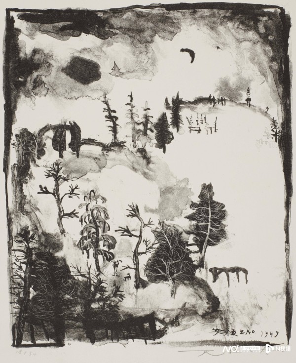 “走向抽象”部分介绍赵无极持续探索版画之际,逐渐运用视觉语言描绘大自然的原始力量,以及他内心世界的幻想风景。他的创作开始深入挖掘图像的诗意与哲学潜力,是他果断迈向抽象风格关键一步的标志。此时的赵无极已是经验老到的版画家,精通针刻、糖水剥离及飞尘蚀刻等新技法,以富有动感的线条和大胆的用色,使整个画面洋溢着丰沛奔放的表现力。他在1950年代末期所运用的许多技术和风格,与他少年时代于中国所学的水墨画与书法彼此呼应。