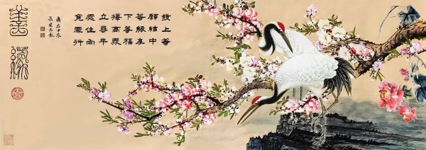在艺术创作方面,吴湖山更是独具匠心。他将自己数十年深耕壁画修复、古画修复的技艺积累,以及对书画艺术形式的深刻理解融会贯通,进行艺术创新,创立了敦煌画派的重要分支——“敦煌幻彩画派”。他将壁画与国画、油画有机融合,成为首位实现“壁画与国画、油画相融合”的艺术家,树立了自己在业内的泰斗地位。他的作品集山水、花鸟、人物画与古文字创作于一体,兼融金石传拓、篆刻技艺,风格多样且变化万千,具有高度的艺术学术价值。