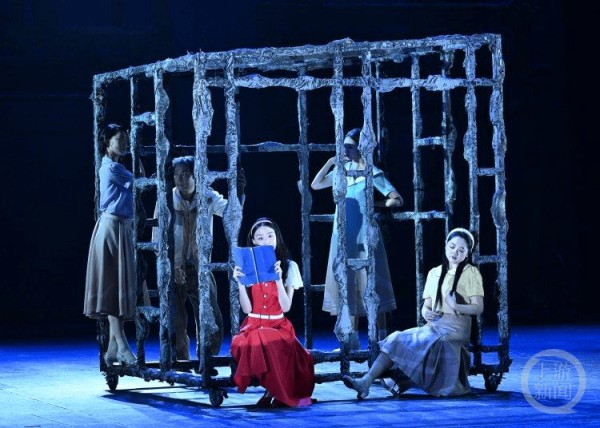 观剧结束后,不少观众都在小红书上留下了“笔记”。有观众提到“很喜欢它的舞台布置。将三个木制大框架和两个牢笼状的正方体作为场景主体,演员们穿梭其中,让我感觉好像也置身于那个波澜壮阔的时代。”