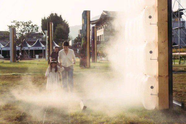《呼吸细胞》将持续展出至11月18日双年展闭幕。(灯光和水雾展示时段:每天12:00-13:00,19:00-20:00)