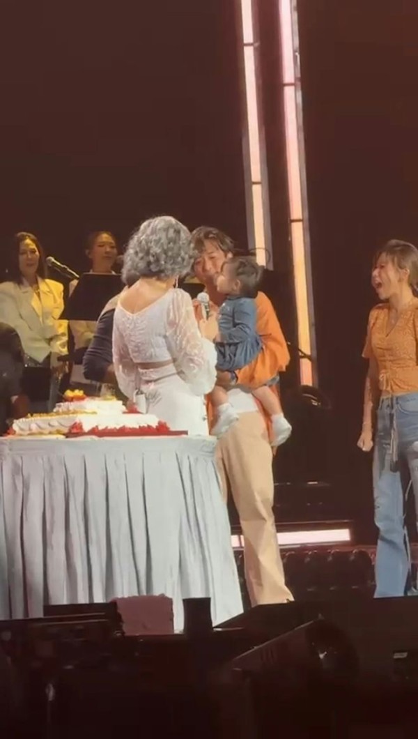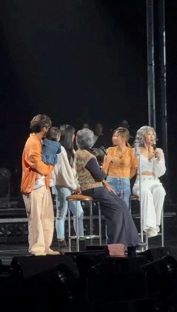 原本连日无嘉宾登场的舞台,此刻迎来了四位特殊的 “表演者”。儿子林德信牵着妻子走上台,儿媳怀中抱着一岁半的小孙女林明,更让人动容的是,定居美国的女儿林德懿也出现在队列中。看着突然现身的家人,正在调整麦克风的林子祥愣了几秒,随即露出孩童般的笑容,快步走上前轻轻抚摸孙女的脸颊,连声道 “没想到你们都来了”。