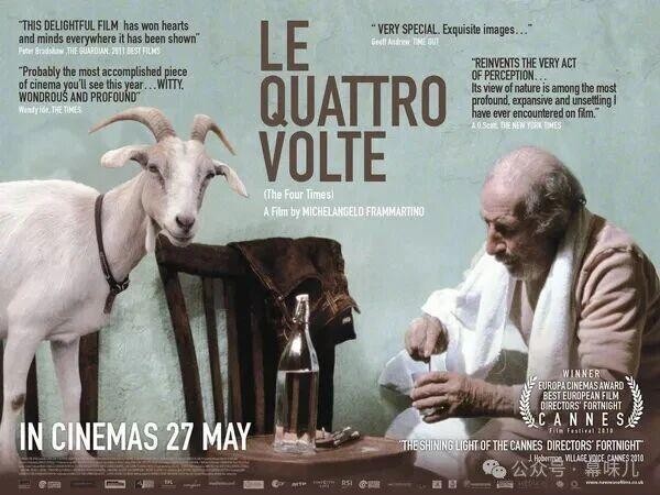 电影资料馆艺术影院今晚首次为大家带来意大利著名导演米开朗基罗·弗兰马汀诺的代表作《四次》,豆瓣8.2分,获戛纳国际电影节导演双周最佳欧洲电影奖。导演的《洞》我们也曾在北影节为大家介绍过,颇受欢迎。