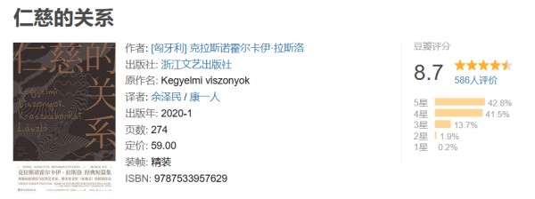 《仁慈的关系》是拉斯洛的中短篇小说集,收录了包括其代表作《茹兹的陷阱》《理发师的手》在内的八个故事。