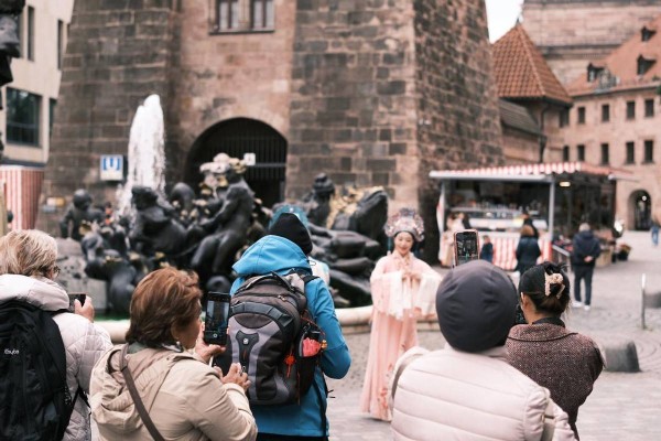 如果说剧场里的《红楼梦》是一场沉浸式的东方梦境,那么散落在欧洲城市角落的国风快闪,则是将这份雅致揉进了街头的生活气息里。