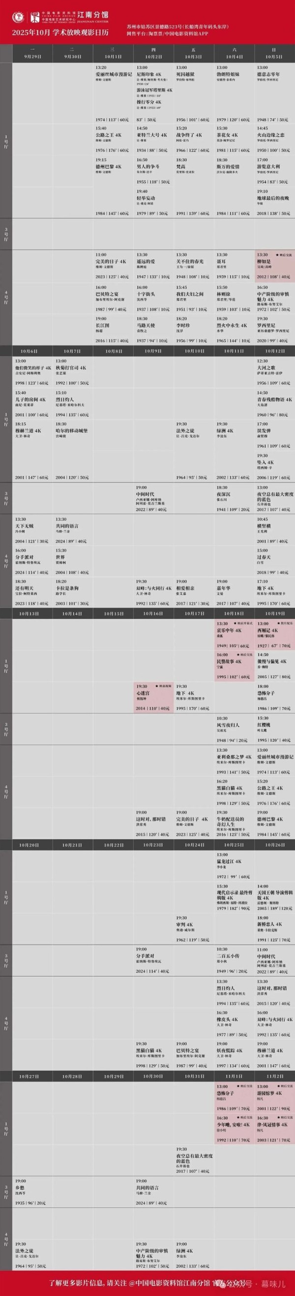 所有场次均可在淘票票、中国电影资料馆APP购票,具体排片见末图,祝大家观影愉快。❤️