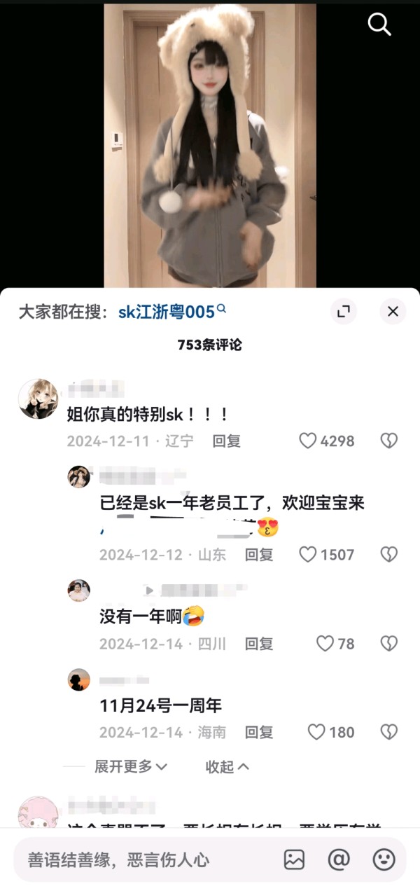 博主翻跳SK开场舞的视频下,热评第一称「特别SK」