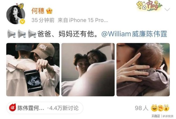 陈伟霆何穗官宣结婚生子,夫妻俩抱娃露面幸福满溢,二人隐藏好深
