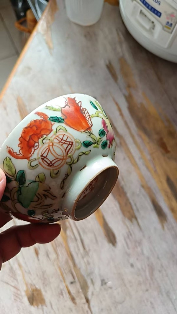 主题纹饰:碗身通常绘有四季花卉与瑞果,如牡丹(象征富贵)、桃实(象征长寿)、石榴(象征多子)、荔枝(象征吉利)、佛手(象征福气)等。这些花果组合在一起,构成了“富贵长寿”、“多子多福”、“吉祥如意”等美好祝愿。这种“图必有意,意必吉祥”的装饰手法,反映了人们对幸福生活的向往与追求。构图与画意:纹饰构图讲究疏密有致,主次分明。或通景连贯,或开光布局。其画风深受当时宫廷画院“恽南田”没骨花鸟画派的影响,注重写生,追求“形神兼备”的艺术境界。使得方寸之间的碗壁,俨然成为一幅生动的工笔花鸟画,充满了自然生机与书卷气息。实用与审美的结合:此类碗器最初多为宫廷日常用膳、品茗或陈设赏玩之物。它将日常生活的实用性与极高的艺术审美完美融合,体现了古代“格物致知”的生活哲学,即在寻常器物中追求至善至美的境界。四、 收藏价值与升值空间