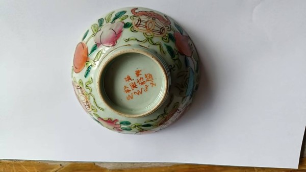 素胎与釉底:首先,需选用景德镇优质高岭土制成碗的素胎,入窑高温烧成坚致的白瓷胎,其胎质洁白、细腻、透光性好。随后,在白瓷胎上施以透明釉,再次入窑烧造,形成光洁莹润的釉面,作为画布的“底色”。“玻璃白”的打底:这是粉彩区别于五彩和斗彩的关键。工匠会用一种含有砷元素的“玻璃白”料,在需要绘制花卉、果实等图案的区域进行打底。这层“玻璃白”如同画纸上的水彩底色,具有不透明的乳浊效果。渲染法与洗染法:在未干的“玻璃白”上,施以各种彩料(如金红、娇黄、碧绿等)。由于“玻璃白”的乳浊作用,彩料在其上会形成自然的晕染和过渡效果。工匠再用干净的毛笔蘸水,将色彩轻轻洗染,形成由深到浅、层次分明的渐变色调。这种技法能够精确地表现出花瓣的柔嫩、果肉的饱满与叶片的阴阳向背,极具立体感和写实效果。低温焙烧与描金:所有彩绘完成后,器物需第三次入窑,在约700-800摄氏度的低温下焙烧,使彩料与“玻璃白”及釉面牢固结合,色彩变得温润柔和。部分精品还会在口沿、纹饰轮廓等处描以金彩,更添富丽堂皇之气。三、 文化底蕴:花果之间的吉祥寓意