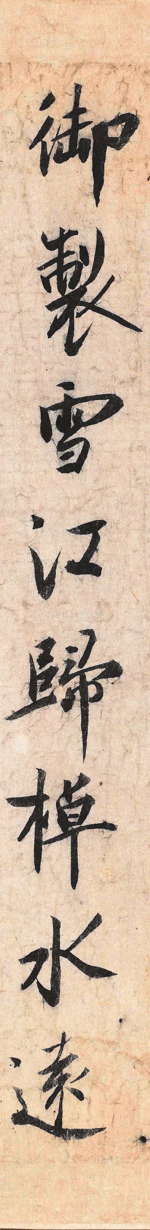 “臣伏观御制雪江归棹,水远无波,天长一色。群山皎洁,行客萧条。鼓棹中流,片帆天际。雪江归棹之意尽矣。天地四时之气不同,万物生于天地间。随气所运,炎凉晦明。生息荣枯,飞走蠢动。变化无方,莫之能穷。皇帝陛下以丹青妙笔,备四时之景色,究万物之情态于四图之内,盖神智与造化等也。大观庚寅季春朔日,太师楚国公致仕臣京谨识。”