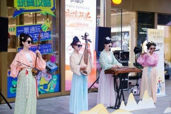 除了书香四溢的摊位,市集现场还上演了一场秋日限定的音乐会。杭州演艺协会街头艺人团队与西子乐坊携手带来民乐重奏,古筝、二胡、笛子与琵琶的音色交织回荡。次日登场的凡人乐社,则以一场充满活力的流行弹唱为书市注入了青春气息,吉他响起,广场的气氛瞬间被点燃,《第一次》《活着》等歌曲引发阵阵合唱。民乐的温雅、流行的热烈与书香共同谱写出了这个秋日最动听的篇章,让城市的节奏在旋律中柔软而鲜活。