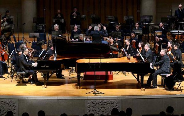 随后,双钢琴协奏曲《瑞士幻想曲》展开一幅明丽多彩的音乐画卷。与《音乐记忆14首》呈现的回忆不同,这部写于2006年创作的作品更像普莱特涅夫与未来的对话。普莱特涅夫、安天旭的双钢琴与乐队的互动尤其精彩,钢琴声线在丰富的音响层次中起伏错落,牵引着4个乐章在浪漫的旋律、轻快的爵士感与质朴的民间舞曲之间自由切换。