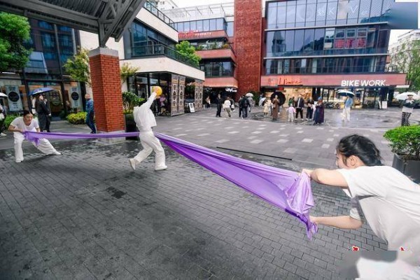 “演员手上的小球忽然从表演区域蹦到我们面前,感觉自己忽然走进了戏剧的世界,让人惊喜,也很触动。在街头偶遇艺术戏剧是很有趣的体验。”游客黄茹说。